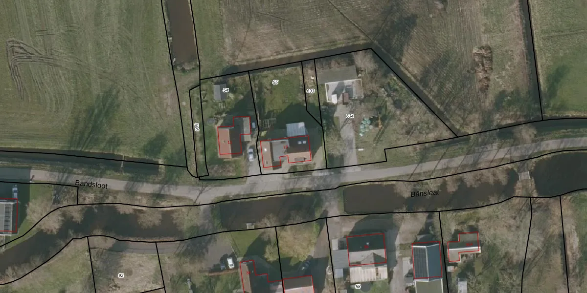 Bandsloot 13 is gelegen op kadastraal perceel OTZ00M55. Deze kadastrale aanduiding is uniek en wordt gebruikt door het Kadaster om eigendomsrechten en andere zakelijke rechten vast te leggen. Het perceel maakt onderdeel uit van de kadastrale gemeente Oosterzee.
