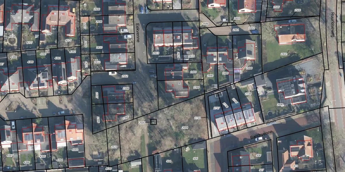 Het perceel waarop Eekvenne 43 staat heeft een oppervlakte van 348 m². Dit is een groot perceel. De perceeloppervlakte wordt geregistreerd door het Kadaster. Gedetailleerde informatie over de maten van dit perceel kunt u vinden in het rapport Kadastrale kaart met maatvoering van Eekvenne 43.