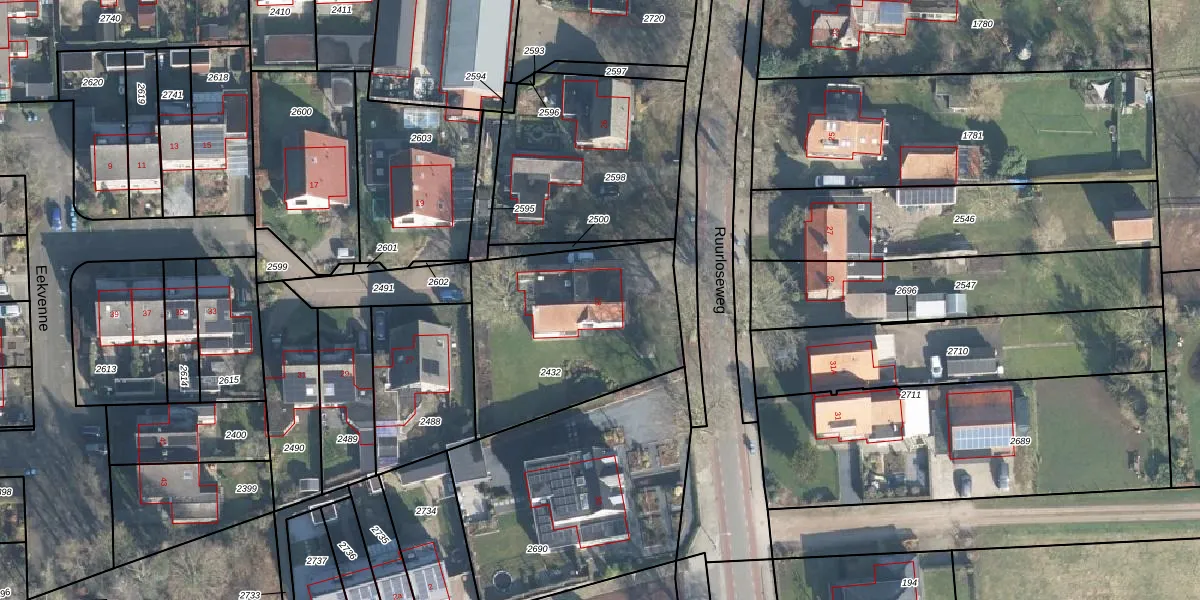 Ruurloseweg 28 is gelegen op kadastraal perceel LRN02I2432. Deze kadastrale aanduiding is uniek en wordt gebruikt door het Kadaster om eigendomsrechten en andere zakelijke rechten vast te leggen. Het perceel maakt onderdeel uit van de kadastrale gemeente Laren Gelderland.
