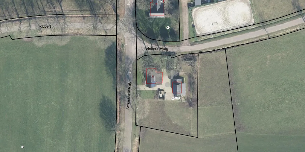 Het perceel waarop Schoneveldsdijk 17 staat heeft een oppervlakte van 2015 m². Dit is een zeer groot perceel. De perceeloppervlakte wordt geregistreerd door het Kadaster. Gedetailleerde informatie over de maten van dit perceel kunt u vinden in het rapport Kadastrale kaart met maatvoering van Schoneveldsdijk 17.