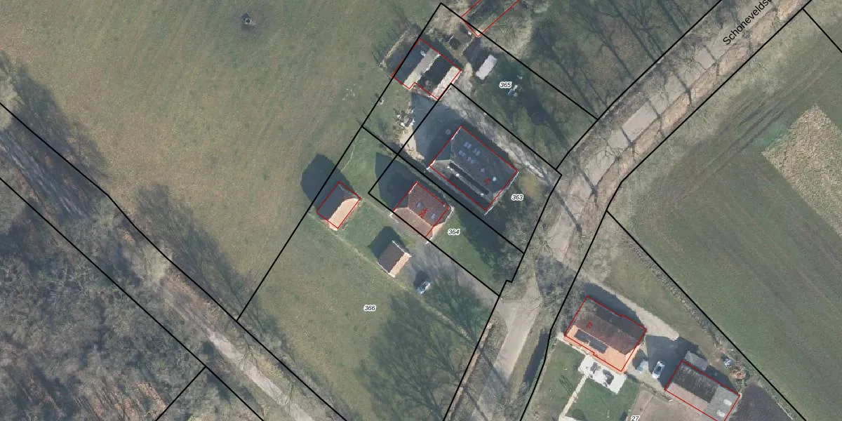 Het perceel waarop Schoneveldsdijk 26-a staat heeft een oppervlakte van 454 m². Dit is een groot perceel. De perceeloppervlakte wordt geregistreerd door het Kadaster. Gedetailleerde informatie over de maten van dit perceel kunt u vinden in het rapport Kadastrale kaart met maatvoering van Schoneveldsdijk 26-a.