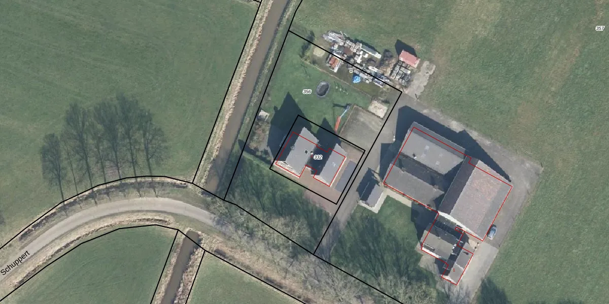 Het perceel waarop Schuppert 1-a staat heeft een oppervlakte van 496 m². Dit is een groot perceel. De perceeloppervlakte wordt geregistreerd door het Kadaster. Gedetailleerde informatie over de maten van dit perceel kunt u vinden in het rapport Kadastrale kaart met maatvoering van Schuppert 1-a.