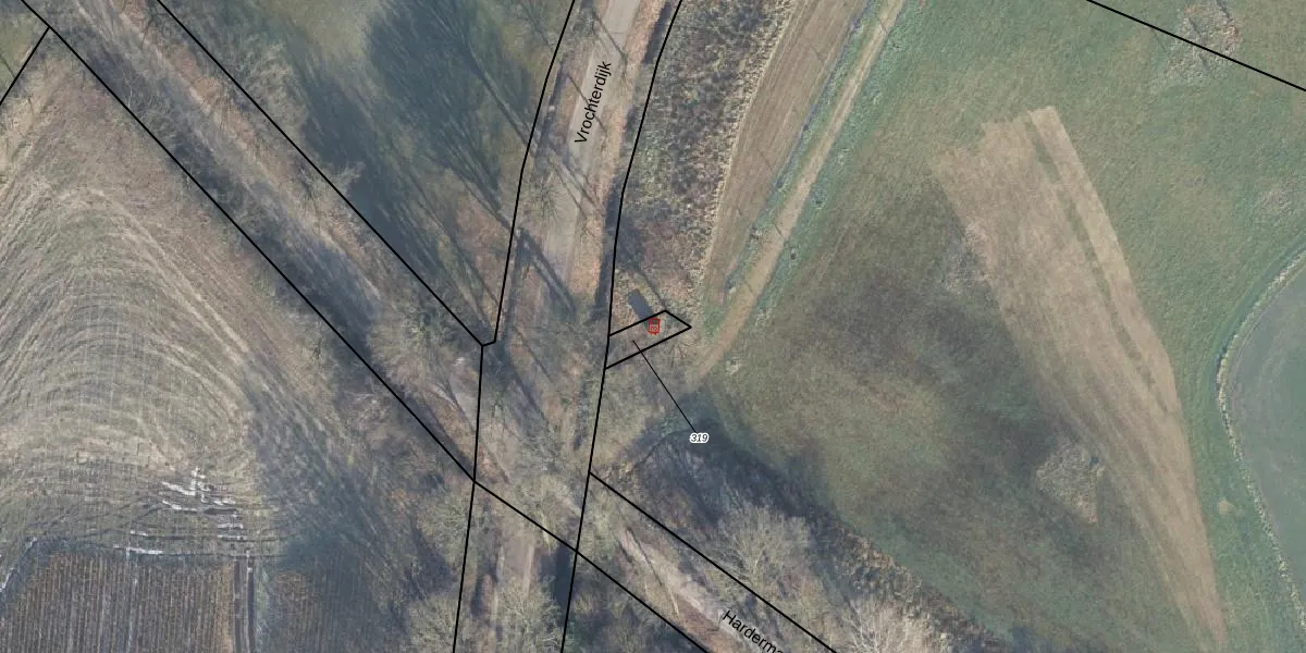 Het perceel waarop Vrochterdijk 13-t staat heeft een oppervlakte van 50 m². Dit is een klein perceel. De perceeloppervlakte wordt geregistreerd door het Kadaster. Gedetailleerde informatie over de maten van dit perceel kunt u vinden in het rapport Kadastrale kaart met maatvoering van Vrochterdijk 13-t.