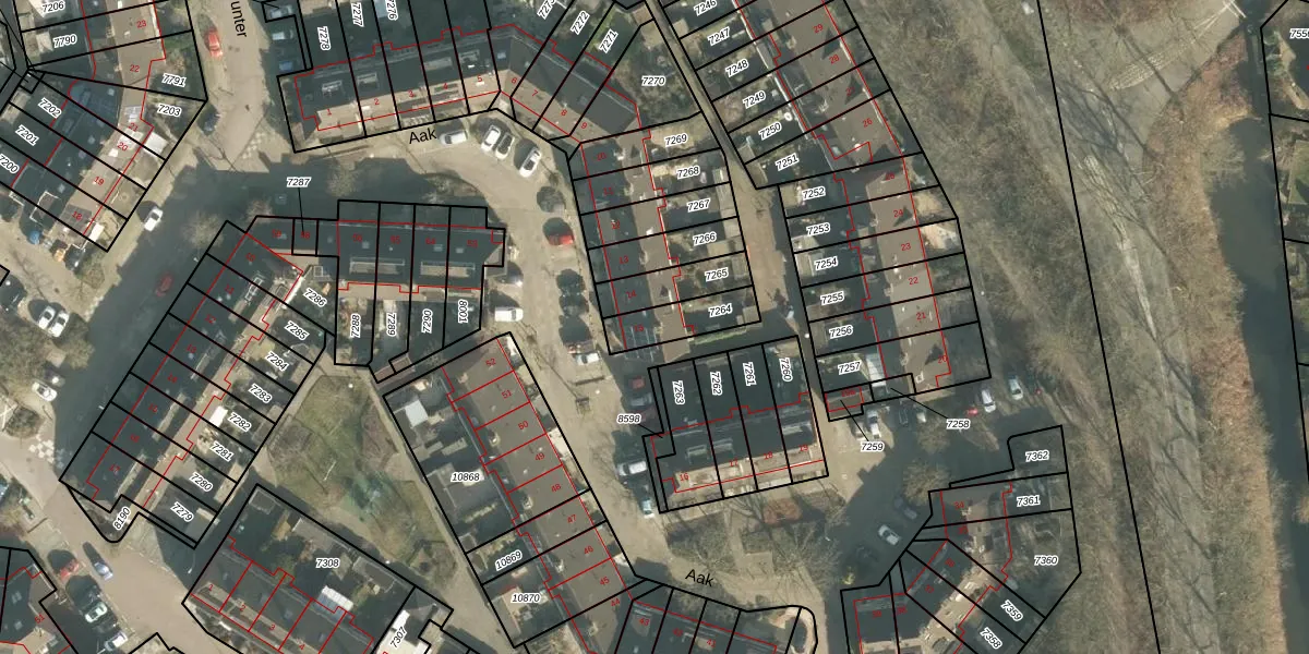 Het perceel waarop Aak 15 staat heeft een oppervlakte van 131 m². Dit is een middelgroot perceel. De perceeloppervlakte wordt geregistreerd door het Kadaster. Gedetailleerde informatie over de maten van dit perceel kunt u vinden in het rapport Kadastrale kaart met maatvoering van Aak 15.