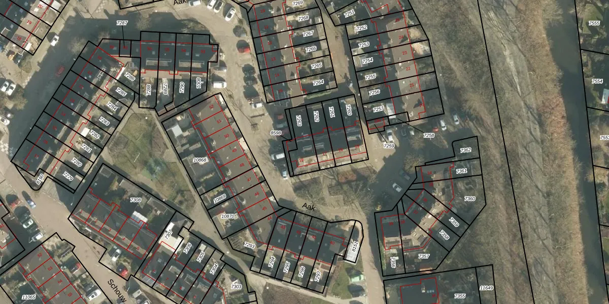 Het perceel waarop Aak 16 staat heeft een oppervlakte van 148 m². Dit is een middelgroot perceel. De perceeloppervlakte wordt geregistreerd door het Kadaster. Gedetailleerde informatie over de maten van dit perceel kunt u vinden in het rapport Kadastrale kaart met maatvoering van Aak 16.