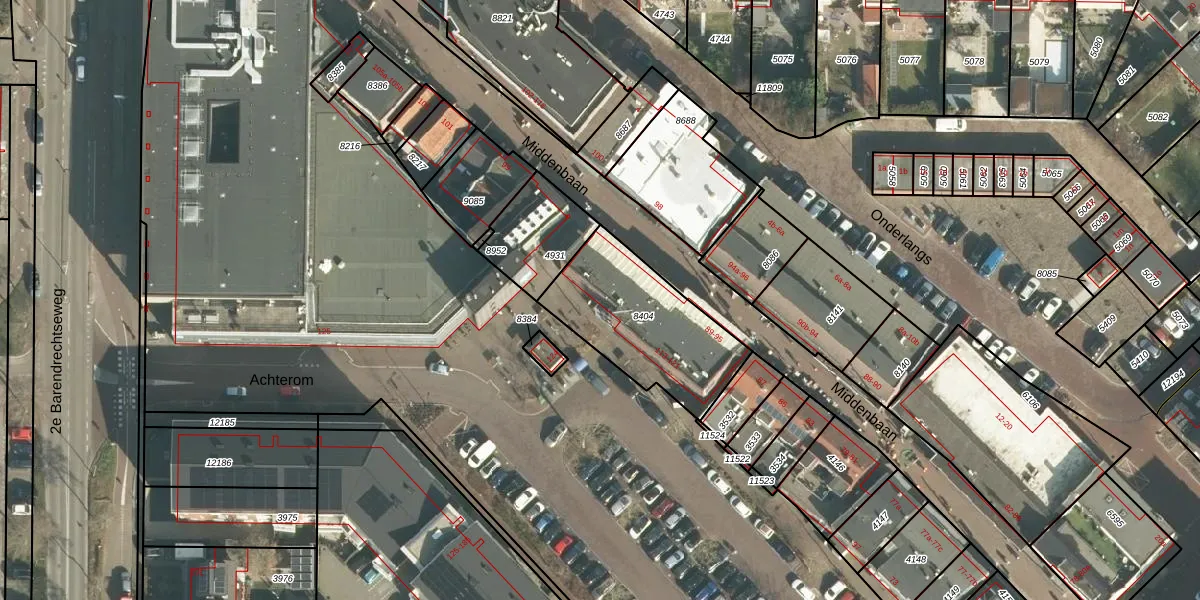 Het adres is gelegen op perceel 8404 in de sectie D en de kadastrale gemeente Barendrecht. De kadastrale aanduiding is aldus BRD00-D-8404. Het perceel is kleiner dan gemiddeld in Barendrecht. Het perceel is 525 m² groot, terwijl het gemiddelde ligt op 1189,09 m². Het kleinste perceel in de kadastrale gemeente is 0 m² groot. De grootste perceeloppervlakte is 58,2 ha. Er zijn 9 adressen aanwezig op het perceel. In de Basisregistratie Kadaster (BRK) werden de grenzen van het perceel geregistreerd op 24-08-2018.