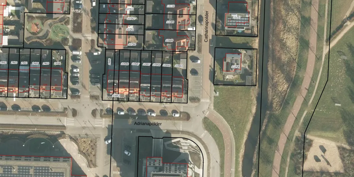 Adrianapolder 1 is gelegen op kadastraal perceel BRD00D10963. Deze kadastrale aanduiding is uniek en wordt gebruikt door het Kadaster om eigendomsrechten en andere zakelijke rechten vast te leggen. Het perceel maakt onderdeel uit van de kadastrale gemeente Barendrecht.