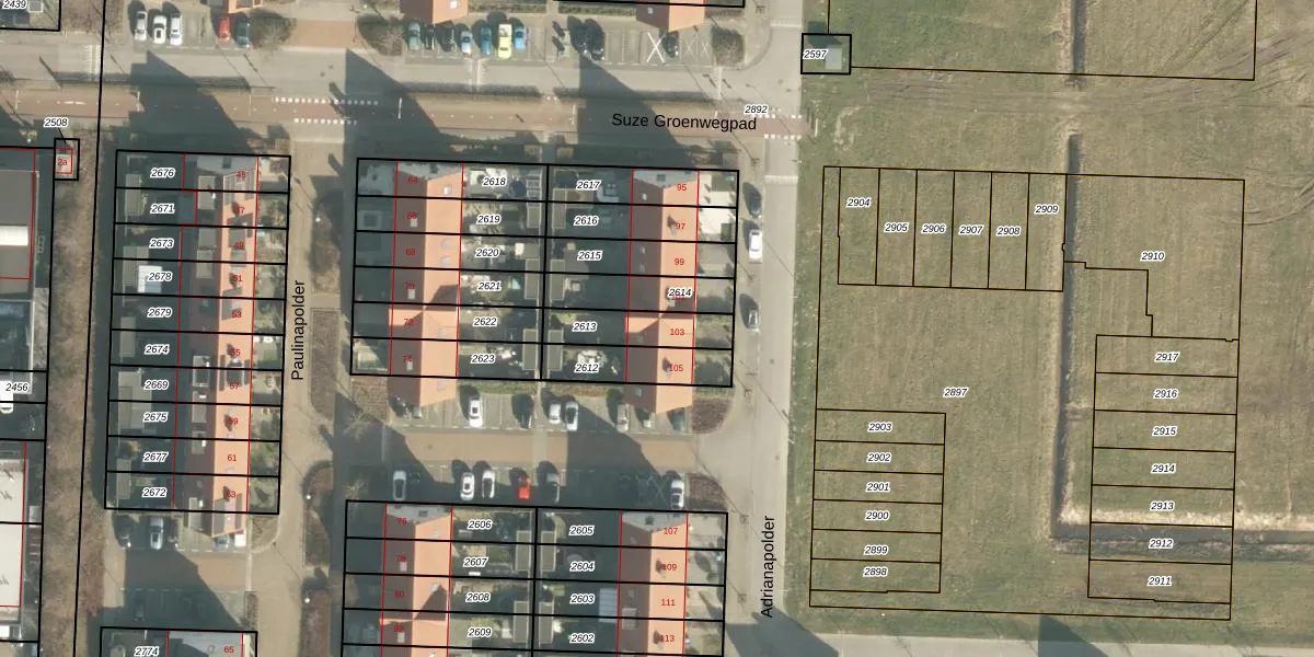 Adrianapolder 103 is gelegen op kadastraal perceel BRD00C2613. Deze kadastrale aanduiding is uniek en wordt gebruikt door het Kadaster om eigendomsrechten en andere zakelijke rechten vast te leggen. Het perceel maakt onderdeel uit van de kadastrale gemeente Barendrecht.