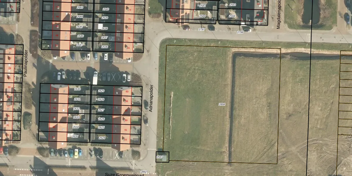 Adrianapolder 28 is gelegen op kadastraal perceel BRD00C2894. Deze kadastrale aanduiding is uniek en wordt gebruikt door het Kadaster om eigendomsrechten en andere zakelijke rechten vast te leggen. Het perceel maakt onderdeel uit van de kadastrale gemeente Barendrecht.
