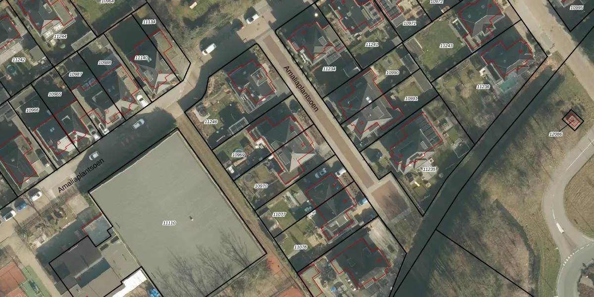 Het perceel waarop Amaliaplantsoen 12 staat heeft een oppervlakte van 415 m². Dit is een groot perceel. De perceeloppervlakte wordt geregistreerd door het Kadaster. Gedetailleerde informatie over de maten van dit perceel kunt u vinden in het rapport Kadastrale kaart met maatvoering van Amaliaplantsoen 12.