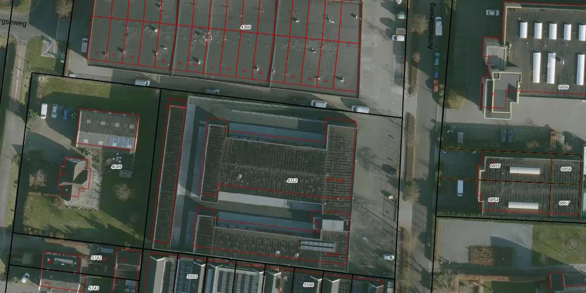 Het perceel waarop Arnhemseweg 9-92 staat heeft een oppervlakte van 4662 m². Dit is een zeer groot perceel. De perceeloppervlakte wordt geregistreerd door het Kadaster. Gedetailleerde informatie over de maten van dit perceel kunt u vinden in het rapport Kadastrale kaart met maatvoering van Arnhemseweg 9-92.
