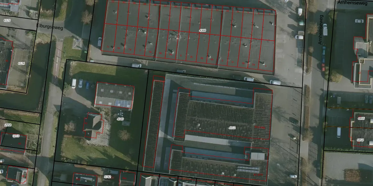 Het perceel waarop Arnhemseweg 9-43 staat heeft een oppervlakte van 4662 m². Dit is een zeer groot perceel. De perceeloppervlakte wordt geregistreerd door het Kadaster. Gedetailleerde informatie over de maten van dit perceel kunt u vinden in het rapport Kadastrale kaart met maatvoering van Arnhemseweg 9-43.