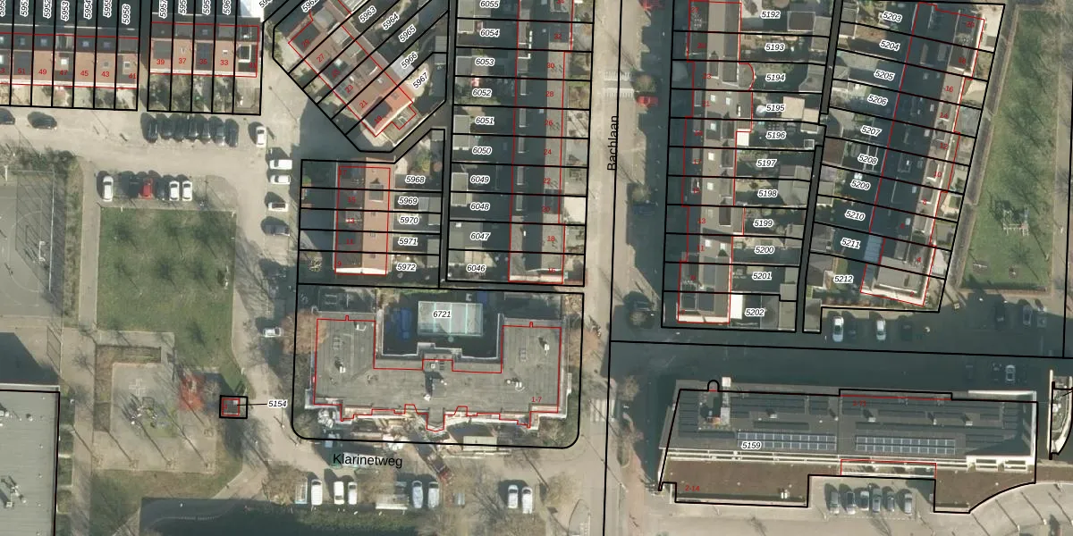 Het perceel waarop Bachlaan 16 staat heeft een oppervlakte van 151 m². Dit is een middelgroot perceel. De perceeloppervlakte wordt geregistreerd door het Kadaster. Gedetailleerde informatie over de maten van dit perceel kunt u vinden in het rapport Kadastrale kaart met maatvoering van Bachlaan 16.