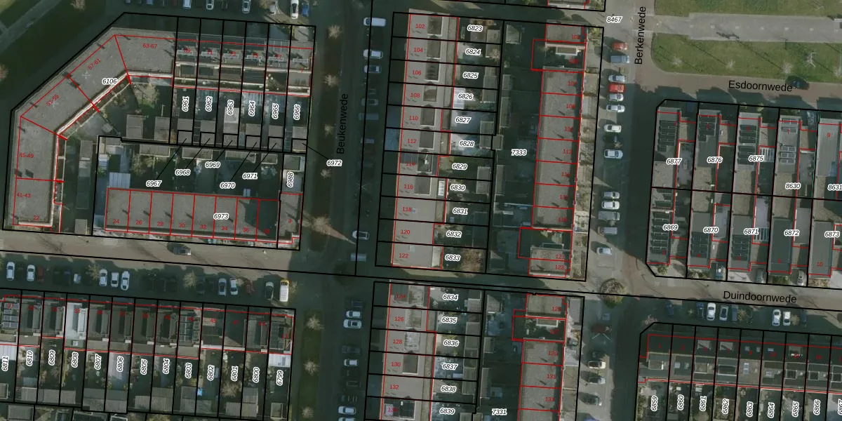 Beukenwede 118 is gelegen op kadastraal perceel BRD00B6831. Deze kadastrale aanduiding is uniek en wordt gebruikt door het Kadaster om eigendomsrechten en andere zakelijke rechten vast te leggen. Het perceel maakt onderdeel uit van de kadastrale gemeente Barendrecht.