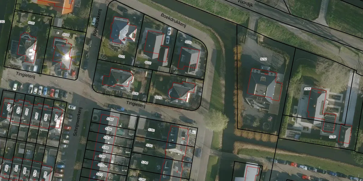 Het perceel waarop Boekdrukkerij 1 staat heeft een oppervlakte van 519 m². Dit is een groot perceel. De perceeloppervlakte wordt geregistreerd door het Kadaster. Gedetailleerde informatie over de maten van dit perceel kunt u vinden in het rapport Kadastrale kaart met maatvoering van Boekdrukkerij 1.