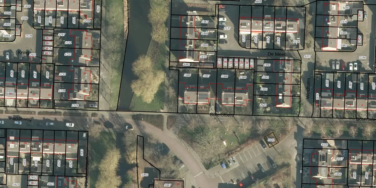 Gebruik de zoekbalk of klik op een perceel voor informatie over de adressen binnen dit perceel.