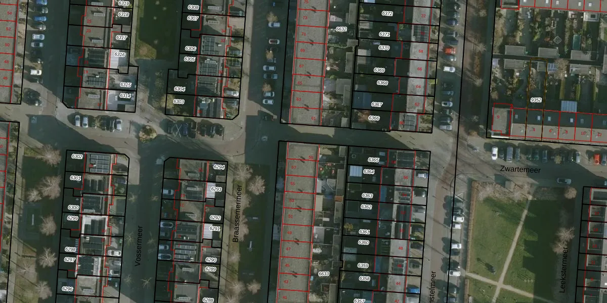 Het perceel waarop Braassemermeer 59 staat heeft een oppervlakte van 1630 m². Dit is een zeer groot perceel. De perceeloppervlakte wordt geregistreerd door het Kadaster. Gedetailleerde informatie over de maten van dit perceel kunt u vinden in het rapport Kadastrale kaart met maatvoering van Braassemermeer 59.