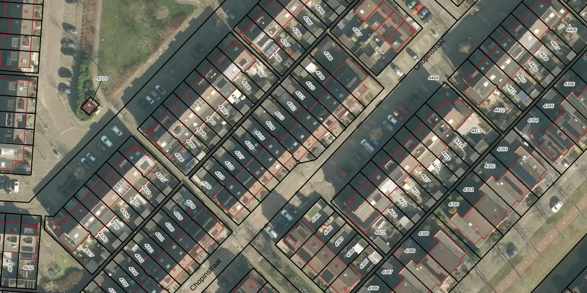 Het perceel waarop Chopinstraat 13 staat heeft een oppervlakte van 120 m². Dit is een middelgroot perceel. De perceeloppervlakte wordt geregistreerd door het Kadaster. Gedetailleerde informatie over de maten van dit perceel kunt u vinden in het rapport Kadastrale kaart met maatvoering van Chopinstraat 13.