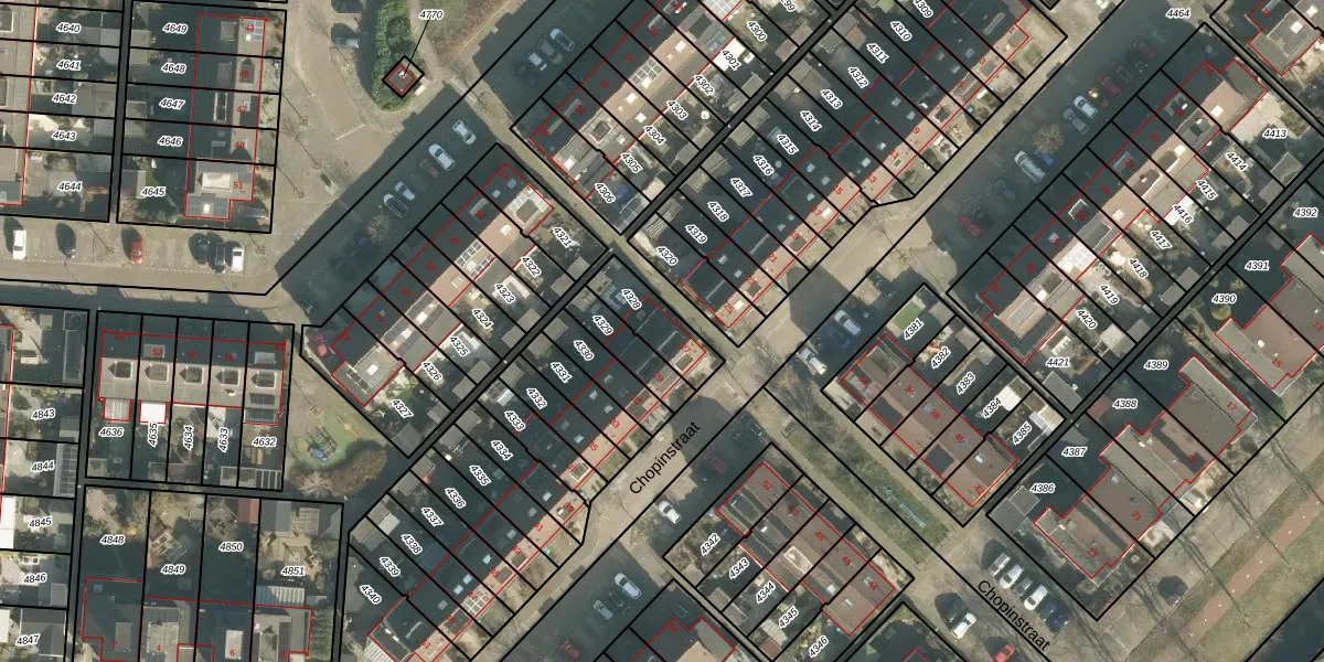 Het perceel waarop Chopinstraat 27 staat heeft een oppervlakte van 142 m². Dit is een middelgroot perceel. De perceeloppervlakte wordt geregistreerd door het Kadaster. Gedetailleerde informatie over de maten van dit perceel kunt u vinden in het rapport Kadastrale kaart met maatvoering van Chopinstraat 27.