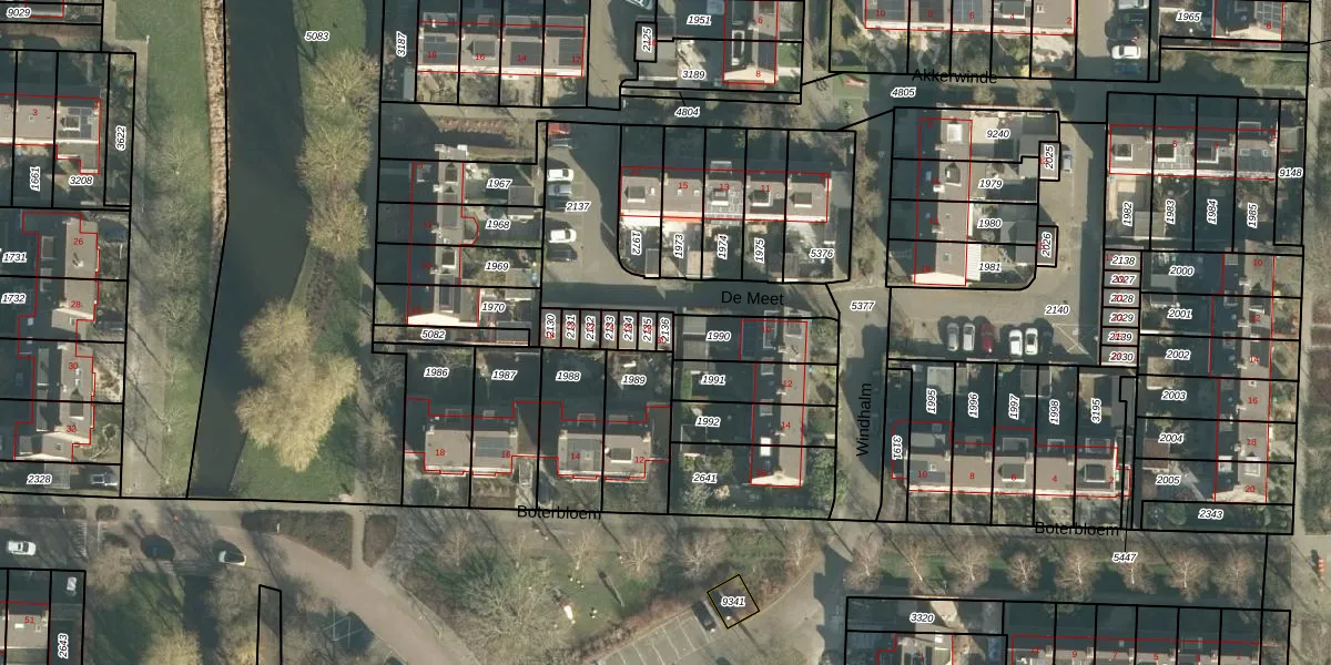 Het perceel waarop De Meet 30 staat heeft een oppervlakte van 18 m². Dit is een klein perceel. De perceeloppervlakte wordt geregistreerd door het Kadaster. Gedetailleerde informatie over de maten van dit perceel kunt u vinden in het rapport Kadastrale kaart met maatvoering van De Meet 30.