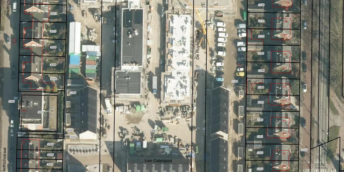 Het perceel waarop De Ruyterstraat 18 staat heeft een oppervlakte van 6705 m². Dit is een zeer groot perceel. De perceeloppervlakte wordt geregistreerd door het Kadaster. Gedetailleerde informatie over de maten van dit perceel kunt u vinden in het rapport Kadastrale kaart met maatvoering van De Ruyterstraat 18.