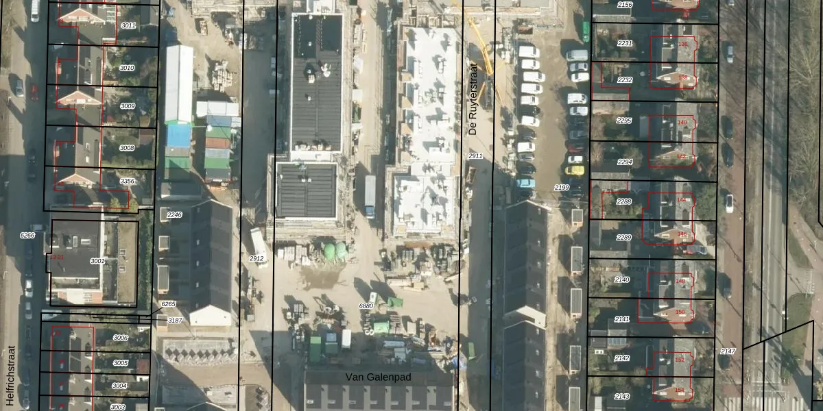 Het perceel waarop De Ruyterstraat 42 staat heeft een oppervlakte van 6705 m². Dit is een zeer groot perceel. De perceeloppervlakte wordt geregistreerd door het Kadaster. Gedetailleerde informatie over de maten van dit perceel kunt u vinden in het rapport Kadastrale kaart met maatvoering van De Ruyterstraat 42.