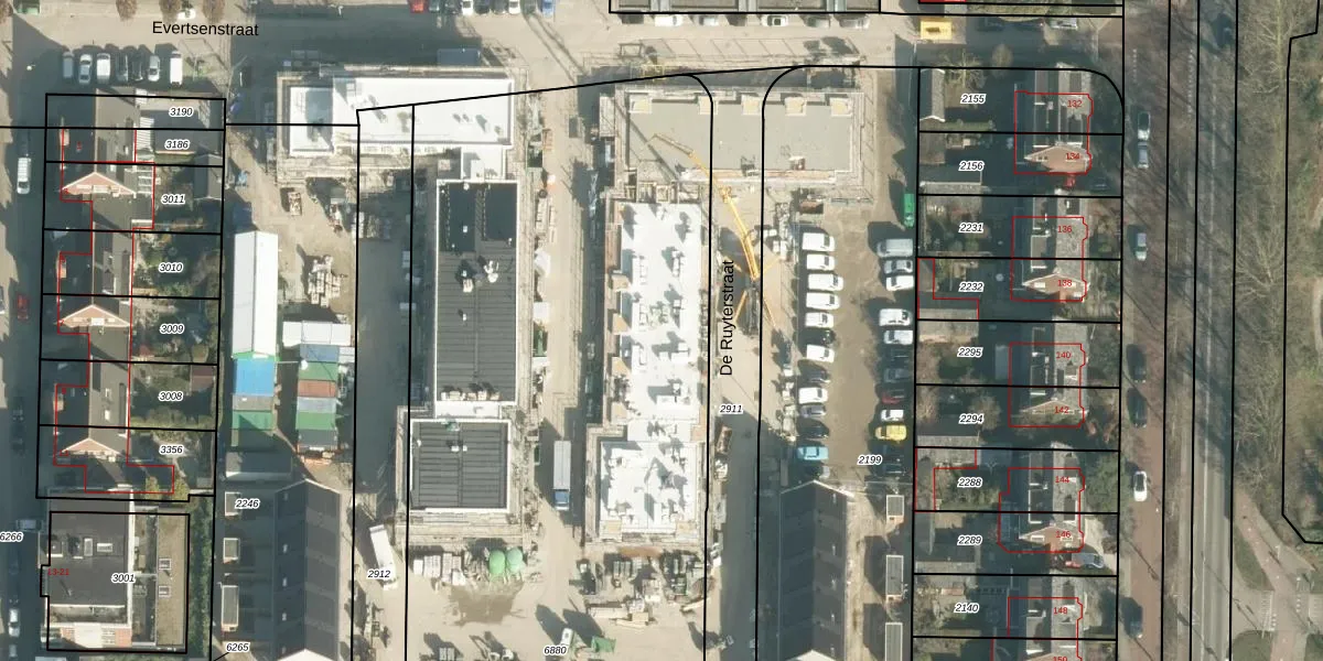 Het perceel waarop De Ruyterstraat 56 staat heeft een oppervlakte van 6705 m². Dit is een zeer groot perceel. De perceeloppervlakte wordt geregistreerd door het Kadaster. Gedetailleerde informatie over de maten van dit perceel kunt u vinden in het rapport Kadastrale kaart met maatvoering van De Ruyterstraat 56.