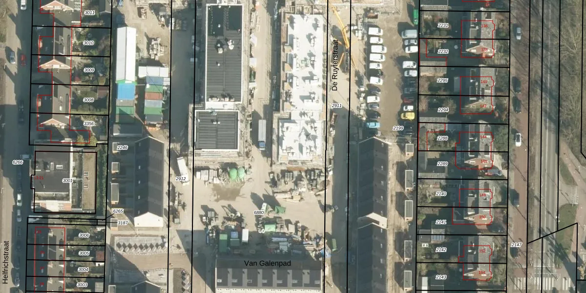 Het perceel waarop De Ruyterstraat 64 staat heeft een oppervlakte van 6705 m². Dit is een zeer groot perceel. De perceeloppervlakte wordt geregistreerd door het Kadaster. Gedetailleerde informatie over de maten van dit perceel kunt u vinden in het rapport Kadastrale kaart met maatvoering van De Ruyterstraat 64.