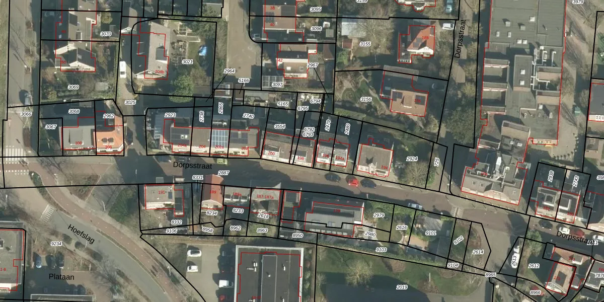 Het perceel waarop Dorpsstraat 198 staat heeft een oppervlakte van 117 m². Dit is een middelgroot perceel. De perceeloppervlakte wordt geregistreerd door het Kadaster. Gedetailleerde informatie over de maten van dit perceel kunt u vinden in het rapport Kadastrale kaart met maatvoering van Dorpsstraat 198.