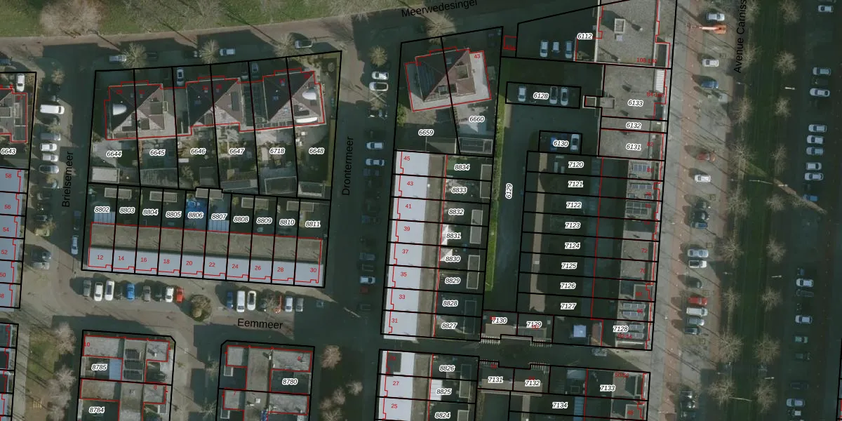 Gebruik de zoekbalk of klik op een perceel voor informatie over de adressen binnen dit perceel.