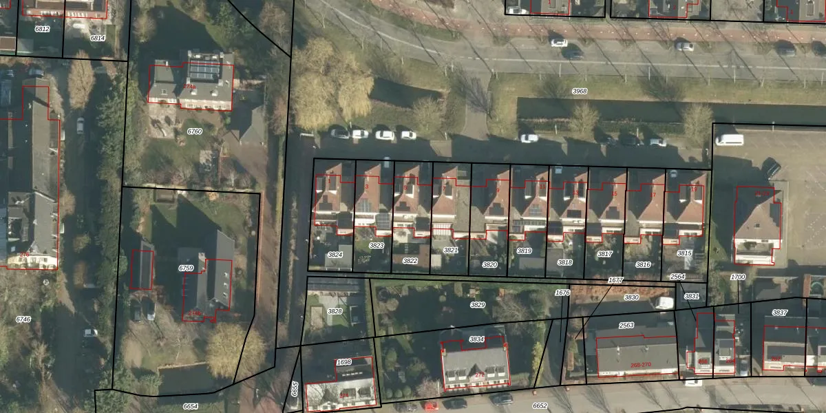 Gebruik de zoekbalk of klik op een perceel voor informatie over de adressen binnen dit perceel.