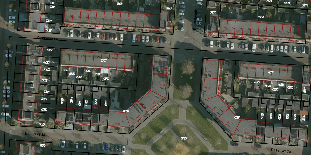 Essenwede 36 is gelegen op kadastraal perceel BRD00B6104. Deze kadastrale aanduiding is uniek en wordt gebruikt door het Kadaster om eigendomsrechten en andere zakelijke rechten vast te leggen. Het perceel maakt onderdeel uit van de kadastrale gemeente Barendrecht.