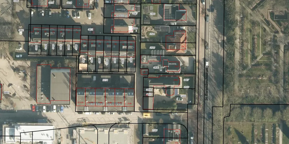 Het perceel waarop het adres ligt is BRD00-A-3411. De afkorting 'BRD00' staat voor kadastrale gemeente Barendrecht. De gemiddelde perceeloppervlakte in de kadastrale gemeente Barendrecht is 1187,79 m². Dit perceel is met zijn 2186 m² dus groter dan gemiddeld. De grootste perceeloppervlakte in de kadastrale gemeente is 58,2 ha. De kleinste oppervlakte bedraagt 0 m². Dit is het enige adres dat aanwezig is op het perceel. In de Basisregistratie Kadaster (BRK) werden de grenzen van het perceel geregistreerd op 26-09-2005.