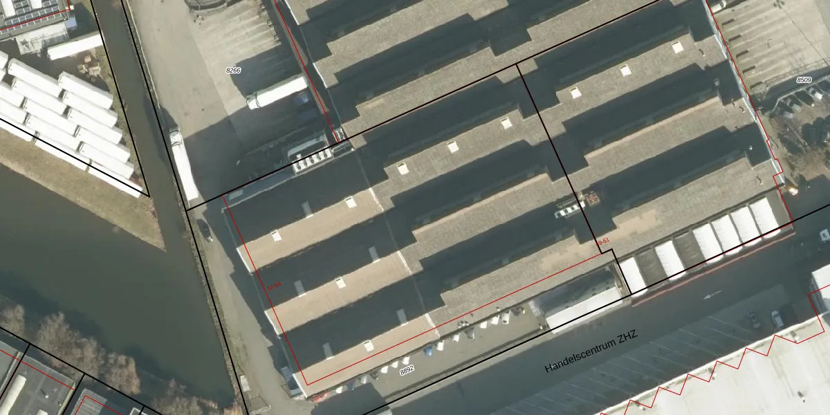 Het perceel waarop Handelscentrum ZHZ 53 staat heeft een oppervlakte van 5700 m². Dit is een zeer groot perceel. De perceeloppervlakte wordt geregistreerd door het Kadaster. Gedetailleerde informatie over de maten van dit perceel kunt u vinden in het rapport Kadastrale kaart met maatvoering van Handelscentrum ZHZ 53.