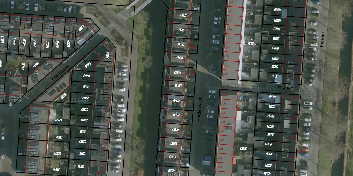 Het perceel waarop Harderwater 13 staat heeft een oppervlakte van 150 m². Dit is een middelgroot perceel. De perceeloppervlakte wordt geregistreerd door het Kadaster. Gedetailleerde informatie over de maten van dit perceel kunt u vinden in het rapport Kadastrale kaart met maatvoering van Harderwater 13.