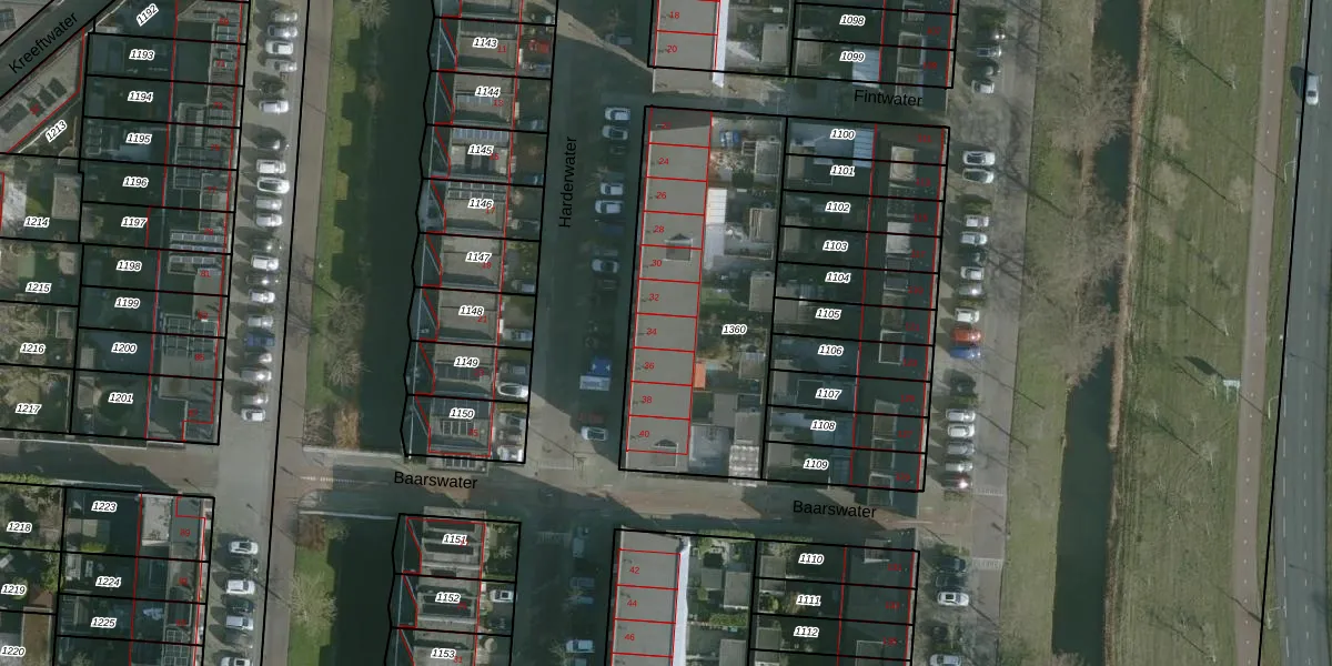 Het perceel waarop Harderwater 34 staat heeft een oppervlakte van 1170 m². Dit is een zeer groot perceel. De perceeloppervlakte wordt geregistreerd door het Kadaster. Gedetailleerde informatie over de maten van dit perceel kunt u vinden in het rapport Kadastrale kaart met maatvoering van Harderwater 34.