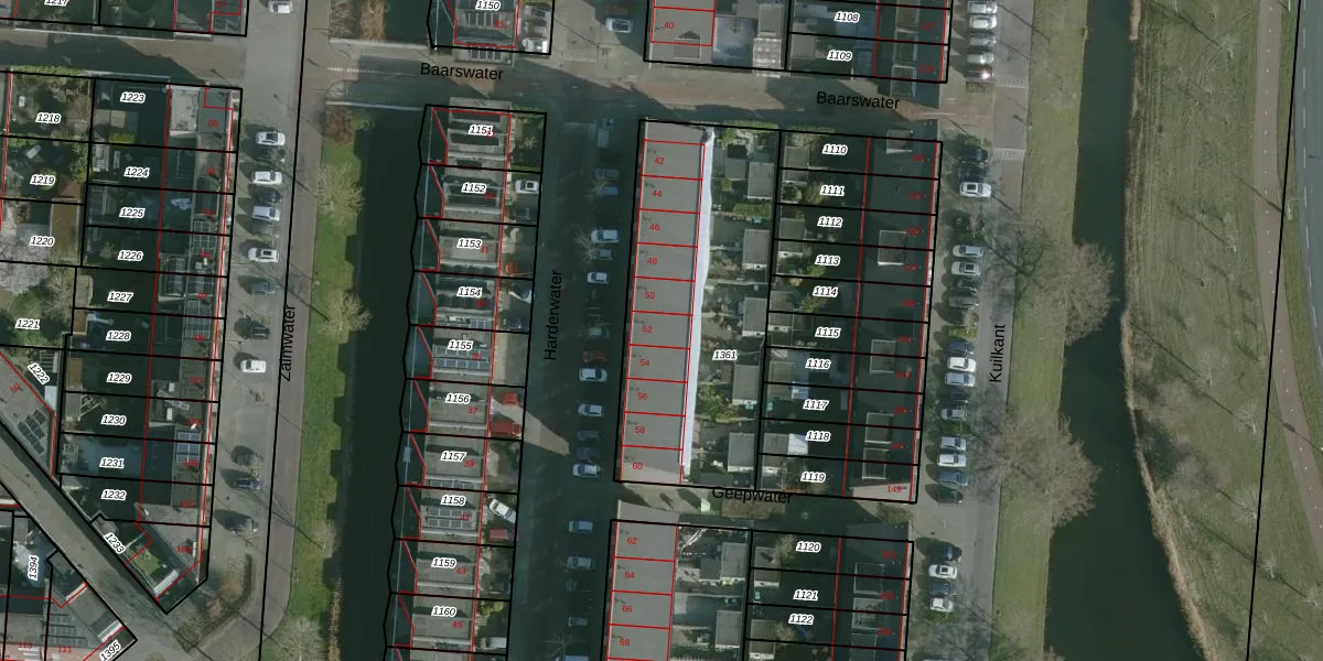 Het perceel waarop Harderwater 52 staat heeft een oppervlakte van 1170 m². Dit is een zeer groot perceel. De perceeloppervlakte wordt geregistreerd door het Kadaster. Gedetailleerde informatie over de maten van dit perceel kunt u vinden in het rapport Kadastrale kaart met maatvoering van Harderwater 52.