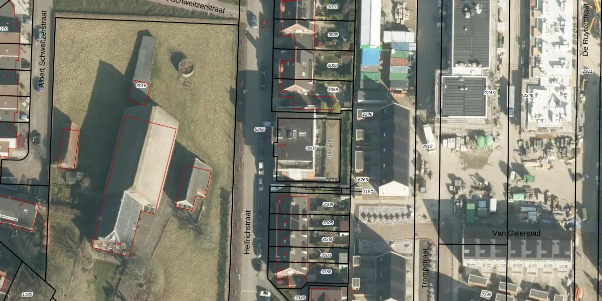Het perceel waarop Helfrichstraat 15 staat heeft een oppervlakte van 445 m². Dit is een groot perceel. De perceeloppervlakte wordt geregistreerd door het Kadaster. Gedetailleerde informatie over de maten van dit perceel kunt u vinden in het rapport Kadastrale kaart met maatvoering van Helfrichstraat 15.