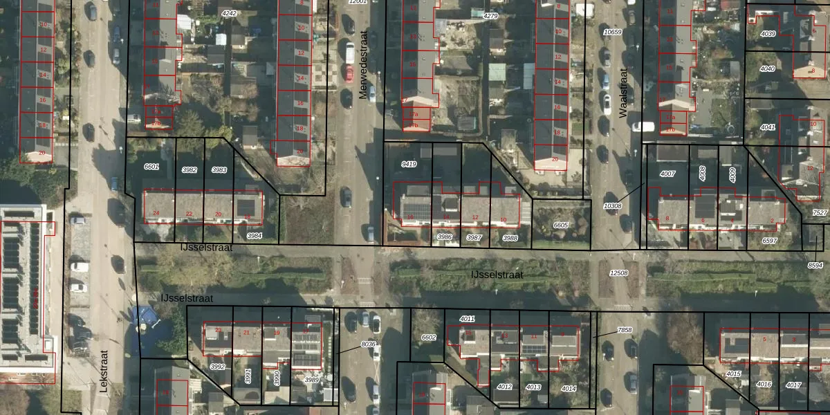 Gebruik de zoekbalk of klik op een perceel voor informatie over de adressen binnen dit perceel.