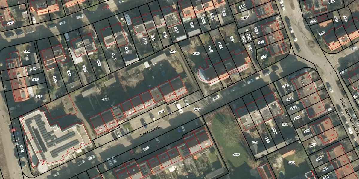 Het perceel waarop Irenestraat 10 staat heeft een oppervlakte van 3132 m². Dit is een zeer groot perceel. De perceeloppervlakte wordt geregistreerd door het Kadaster. Gedetailleerde informatie over de maten van dit perceel kunt u vinden in het rapport Kadastrale kaart met maatvoering van Irenestraat 10.
