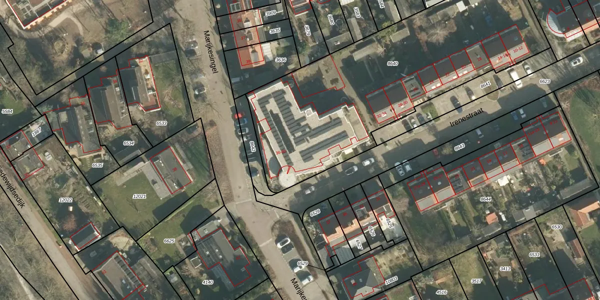 Het perceel waarop Irenestraat 48 staat heeft een oppervlakte van 3132 m². Dit is een zeer groot perceel. De perceeloppervlakte wordt geregistreerd door het Kadaster. Gedetailleerde informatie over de maten van dit perceel kunt u vinden in het rapport Kadastrale kaart met maatvoering van Irenestraat 48.