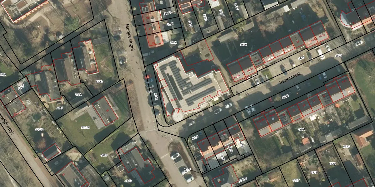 Het perceel waarop Irenestraat 60 staat heeft een oppervlakte van 3132 m². Dit is een zeer groot perceel. De perceeloppervlakte wordt geregistreerd door het Kadaster. Gedetailleerde informatie over de maten van dit perceel kunt u vinden in het rapport Kadastrale kaart met maatvoering van Irenestraat 60.