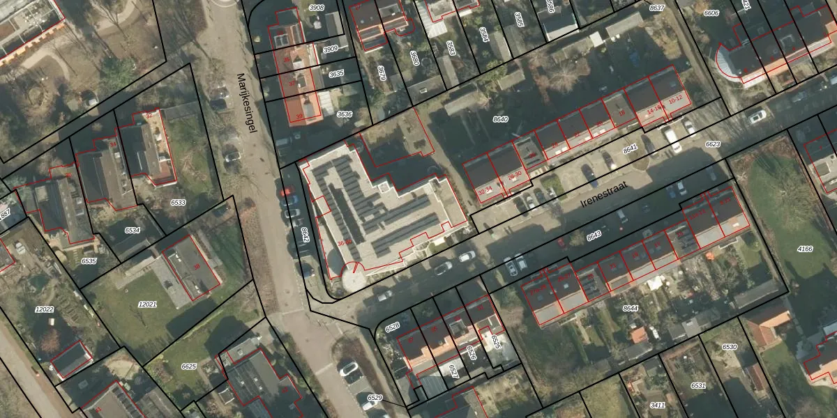Het perceel waarop Irenestraat 64 staat heeft een oppervlakte van 3132 m². Dit is een zeer groot perceel. De perceeloppervlakte wordt geregistreerd door het Kadaster. Gedetailleerde informatie over de maten van dit perceel kunt u vinden in het rapport Kadastrale kaart met maatvoering van Irenestraat 64.