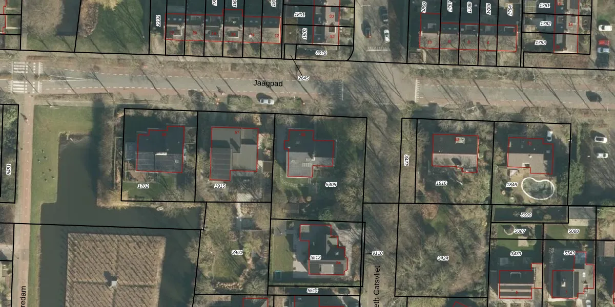 Het perceel waarop Jaagpad 55 staat heeft een oppervlakte van 1031 m². Dit is een zeer groot perceel. De perceeloppervlakte wordt geregistreerd door het Kadaster. Gedetailleerde informatie over de maten van dit perceel kunt u vinden in het rapport Kadastrale kaart met maatvoering van Jaagpad 55.