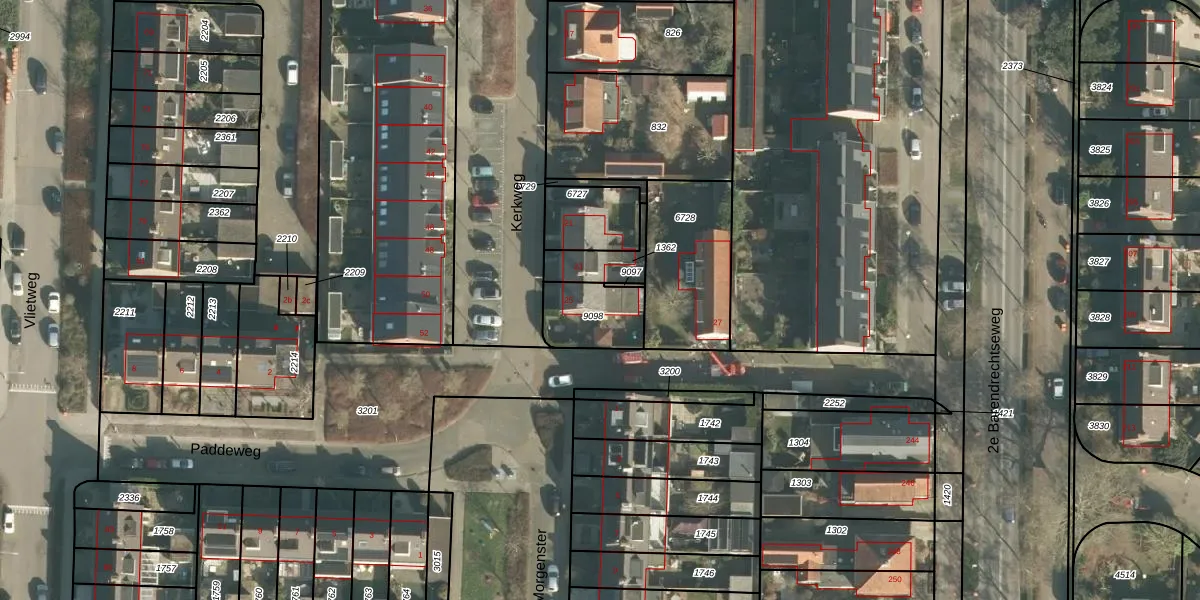 Kerkweg 25 is gelegen op kadastraal perceel BRD00B9098. Deze kadastrale aanduiding is uniek en wordt gebruikt door het Kadaster om eigendomsrechten en andere zakelijke rechten vast te leggen. Het perceel maakt onderdeel uit van de kadastrale gemeente Barendrecht.