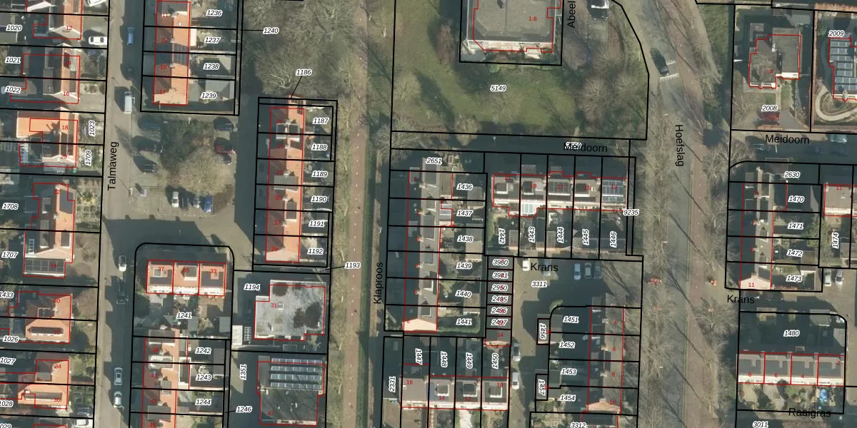 Het perceel waarop Klaproos 2 staat heeft een oppervlakte van 142 m². Dit is een middelgroot perceel. De perceeloppervlakte wordt geregistreerd door het Kadaster. Gedetailleerde informatie over de maten van dit perceel kunt u vinden in het rapport Kadastrale kaart met maatvoering van Klaproos 2.
