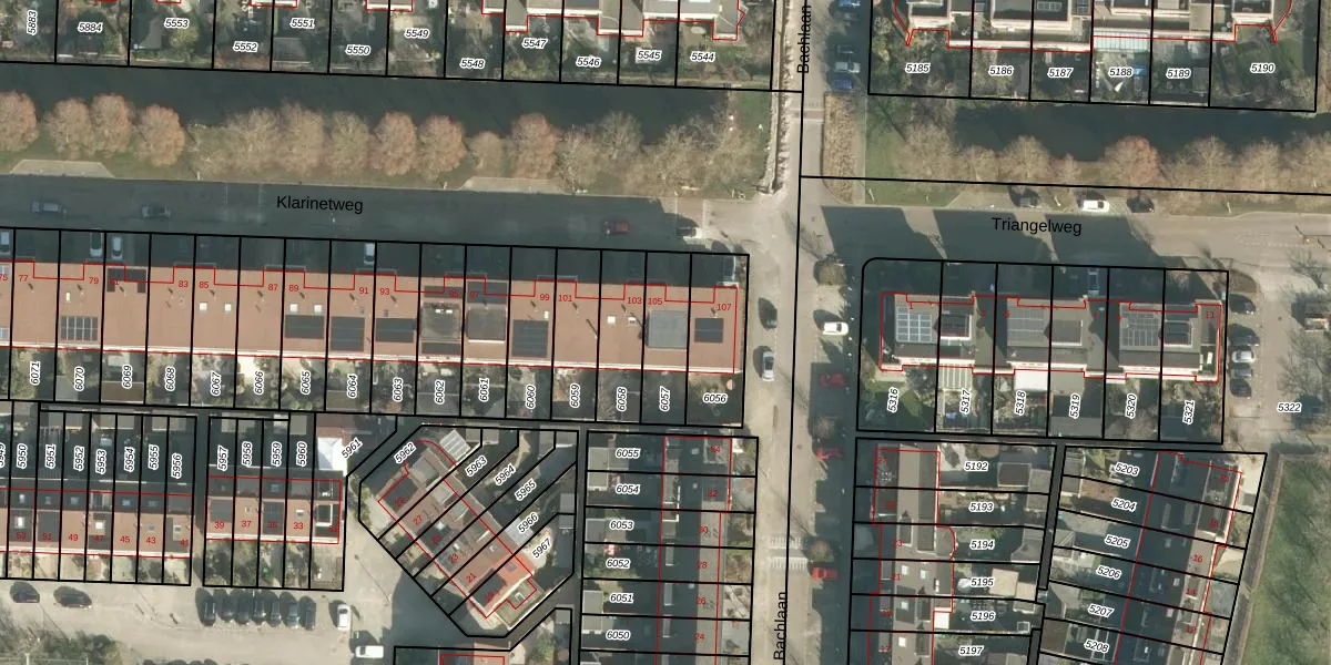 Het perceel waarop Klarinetweg 105 staat heeft een oppervlakte van 175 m². Dit is een middelgroot perceel. De perceeloppervlakte wordt geregistreerd door het Kadaster. Gedetailleerde informatie over de maten van dit perceel kunt u vinden in het rapport Kadastrale kaart met maatvoering van Klarinetweg 105.