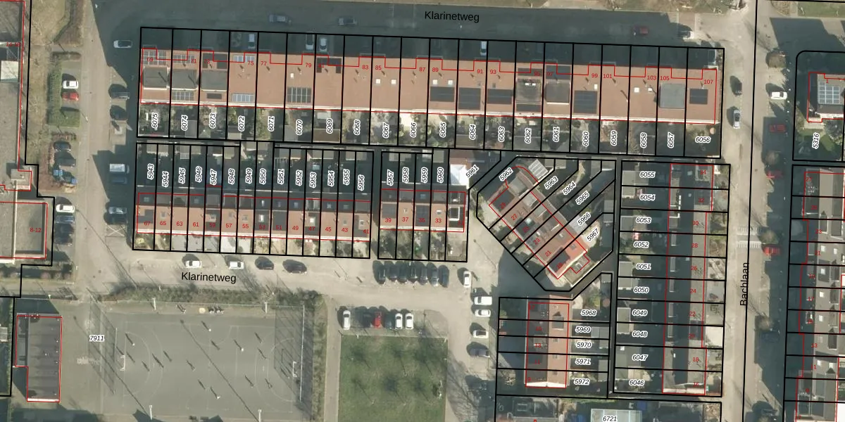 Het perceel waarop Klarinetweg 35 staat heeft een oppervlakte van 99 m². Dit is een klein perceel. De perceeloppervlakte wordt geregistreerd door het Kadaster. Gedetailleerde informatie over de maten van dit perceel kunt u vinden in het rapport Kadastrale kaart met maatvoering van Klarinetweg 35.