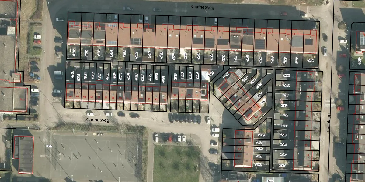 Het perceel waarop Klarinetweg 37 staat heeft een oppervlakte van 99 m². Dit is een klein perceel. De perceeloppervlakte wordt geregistreerd door het Kadaster. Gedetailleerde informatie over de maten van dit perceel kunt u vinden in het rapport Kadastrale kaart met maatvoering van Klarinetweg 37.