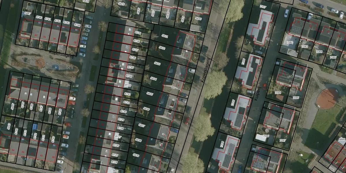 Het perceel waarop Koperslagerij 4 staat heeft een oppervlakte van 256 m². Dit is een middelgroot perceel. De perceeloppervlakte wordt geregistreerd door het Kadaster. Gedetailleerde informatie over de maten van dit perceel kunt u vinden in het rapport Kadastrale kaart met maatvoering van Koperslagerij 4.